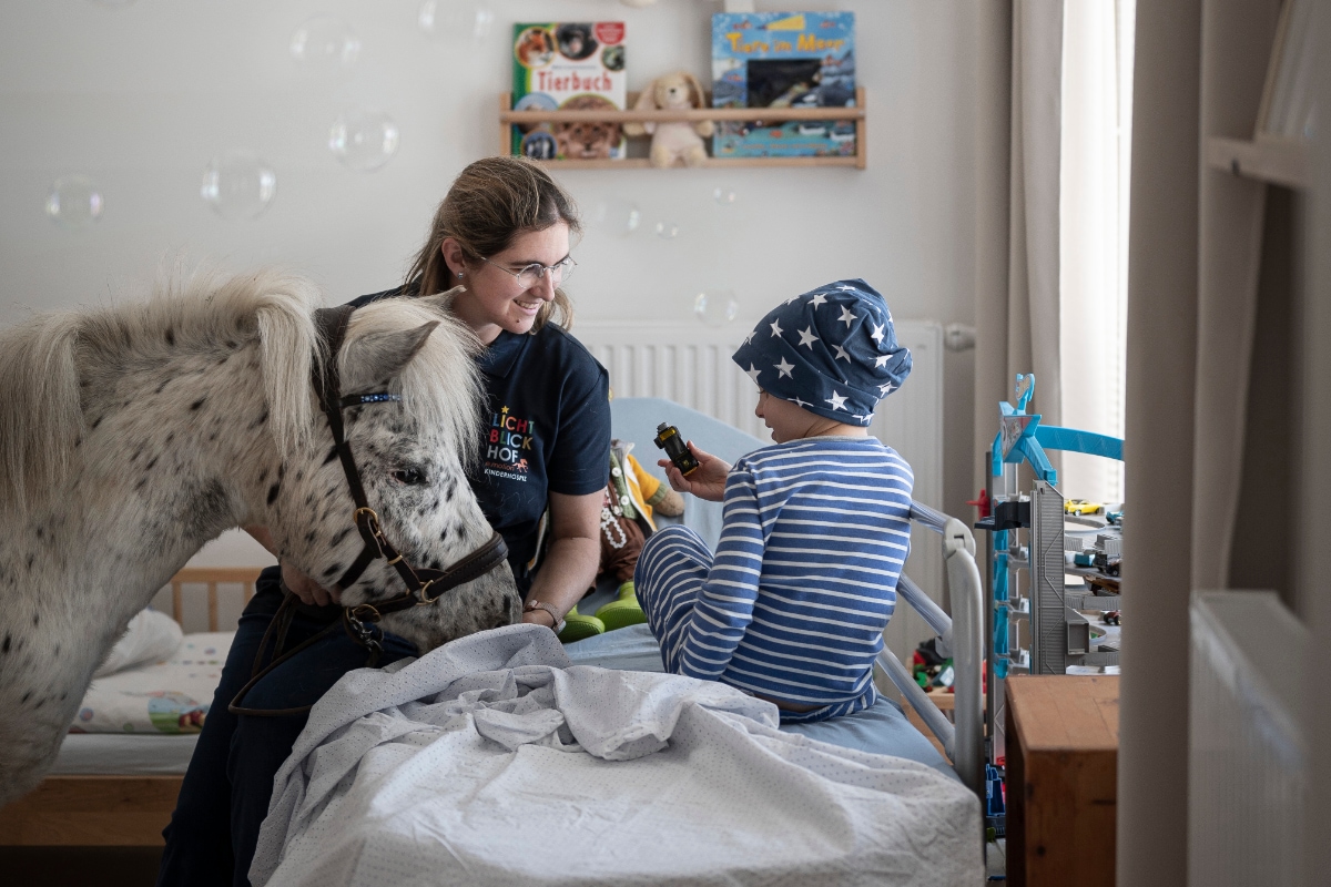 Für Kinder mit schweren oder lebensverkürzenden Erkrankungen zählt jeder Moment. Am Lichtblickhof werden diese kostbaren Augenblicke bewusst gestaltet. In der tiergestützten Kinderhospizbegleitung entstehen kleine Wunder: ein Kind, das beim Streicheln eines Pferdes zur Ruhe kommt, ein Lächeln beim Schnurren einer Katze, ein gemeinsames Frühstück mit dem Lieblingstier. Die Tiere schenken Trost, Sicherheit und Lebensfreude – ganz ohne Worte. Diese Erlebnisse stärken nicht nur die Kinder, sondern auch ihre Familien und schaffen Erinnerungen, die weit über die gemeinsame Zeit hinaustragen.